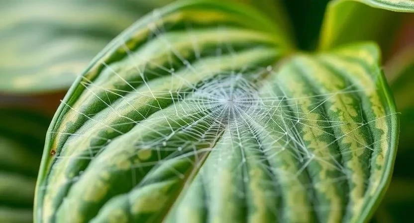 Паутинный клещ – микроскопический вредитель, который быстро размножается в сухом воздухе. Он высасывает сок из листьев, оставляя на них мелкие желтые точки. Симптомы поражения: появление тонкой паутины на листьях, пожелтение и опадание листьев, засыхание растения. Методы борьбы: опрыскивание растений акарицидами, повышение влажности воздуха.