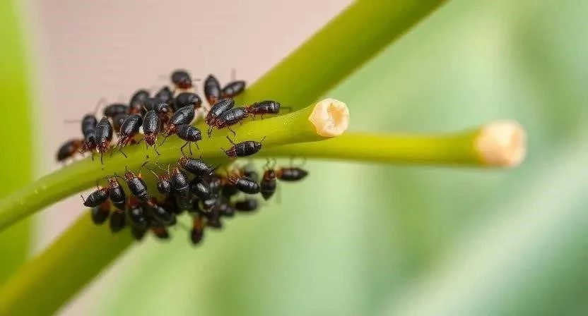 - Щитовка (Diaspididae): Эти вредители выглядят как маленькие коричневые щитки, плотно прикрепленные к стеблям и листьям. Они высасывают сок из растения, ослабляя его.