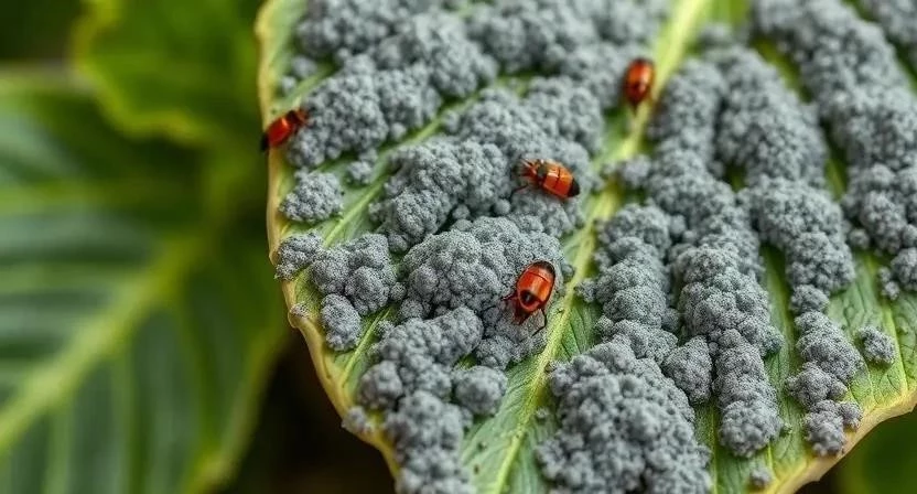 - Мучнистый червец: Эти вредители выглядят как маленькие ватные комочки. Они также высасывают сок из растения и оставляют после себя липкий налет.