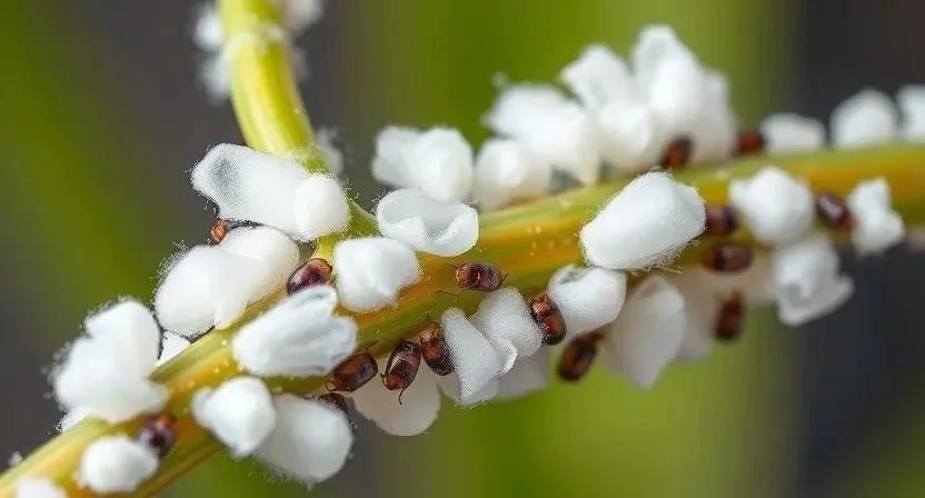 | Червец | (Фото червеца) | Белые ватообразные комочки на листьях и стеблях | Механическое удаление, инсектициды |