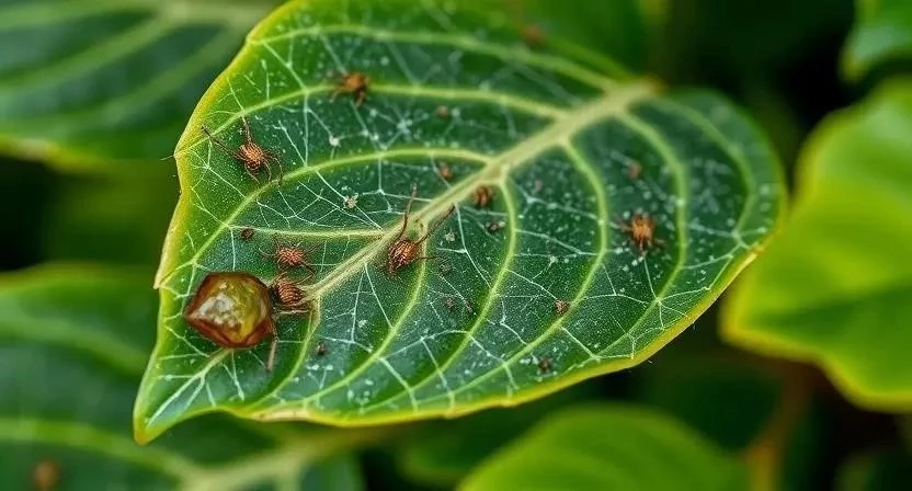 | Паутинный клещ | (Фото паутинного клеща) | Тонкая паутина на листьях, светлые точки на листьях | Опрыскивание акарицидами, повышение влажности |