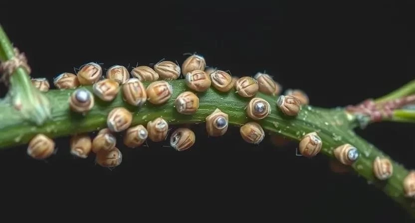 - Щитовка: Один из самых коварных вредителей, образующий на листьях и стеблях плотные щитки.