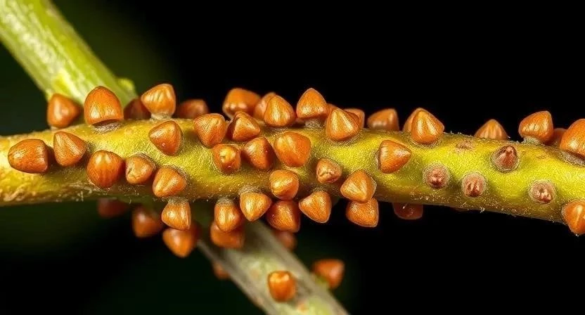 - Щитовка: Насекомые, покрытые восковым щитком, который защищает их от воздействия инсектицидов. Оседают на листьях и стеблях, высасывая сок и ослабляя растение.