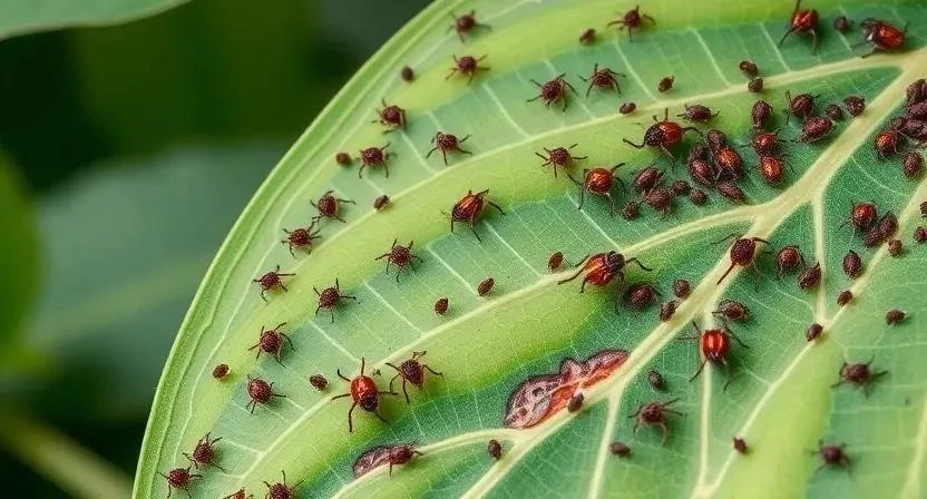 - Паутинный клещ: Мелкий вредитель, оставляющий на листьях тонкую паутину.
