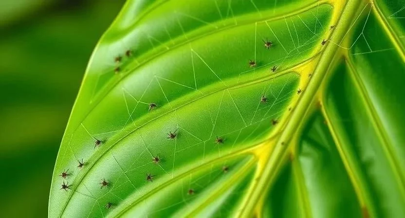 - Паутинный клещ: Этот крошечный вредитель легко узнаваем по тонкой паутине, опутывающей листья и стебли. Листья при этом желтеют и сохнут.