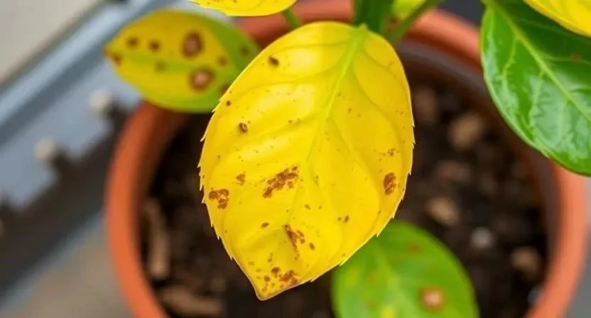 Ответ: Пожелтение листьев может быть вызвано недостатком влаги, переувлажнением, недостатком света или питательных веществ.