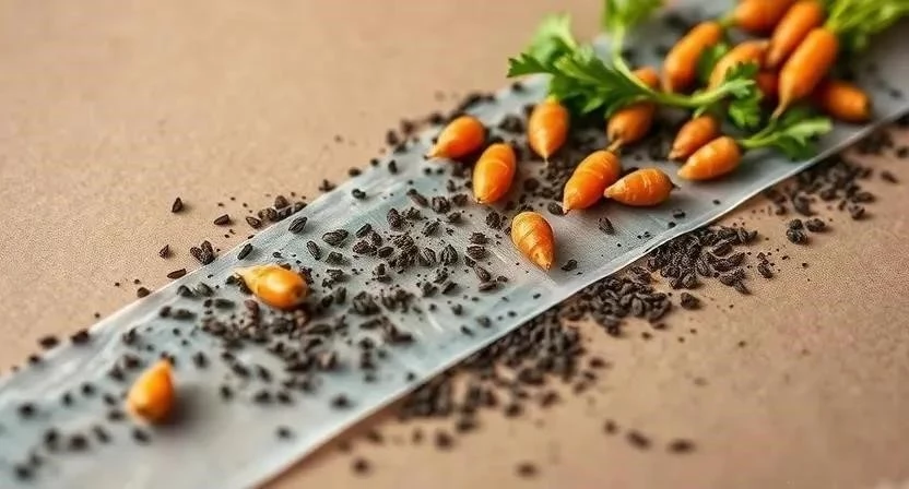 Посадка моркови на ленту – это удобный и эффективный способ, который позволяет равномерно распределить семена по грядке и избежать загущения посевов. Для этого можно использовать специальную ленту для моркови или сделать ее самостоятельно из бумаги или ткани. Я обычно покупаю готовую ленту, так как это экономит мое время. Семена на ленте располагаются на определенном расстоянии друг от друга, что облегчает прореживание всходов. Это особенно важно для моркови, так как она не любит загущения.