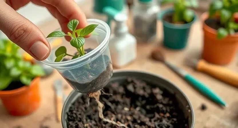 Как правильно пикировать: Аккуратно извлеките рассаду из стаканчика, стараясь не повредить корни. Сделайте углубление в новом стаканчике и поместите туда растение. Присыпьте корни почвой и слегка уплотните. Полейте рассаду водой.