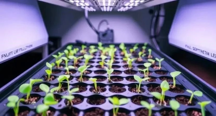 - Спектр: Для рассады важен синий спектр, который способствует росту листьев и укреплению стеблей.