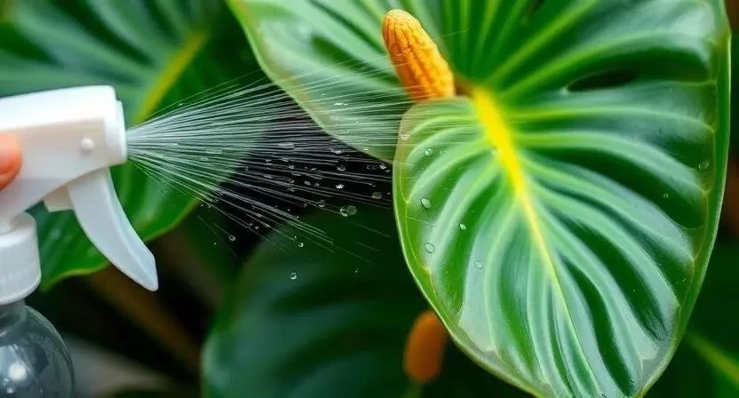 Антуриум – тропическое растение, поэтому он нуждается в высокой влажности воздуха. Осенью, когда отопление сушит воздух, необходимо поддерживать оптимальную влажность вокруг растения. Регулярно опрыскивайте листья антуриума мягкой водой, используйте увлажнитель воздуха или поставьте горшок с растением на поддон с влажным керамзитом. Я всегда опрыскиваю свой антуриум утром, чтобы листья успели высохнуть до вечера. Это помогает предотвратить развитие грибковых заболеваний.