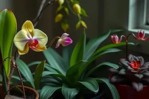 - Орхидеи: яркий рассеянный свет, умеренная влажность.