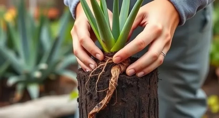 - Аккуратно извлеките алоэ из старого горшка, стараясь не повредить корни.