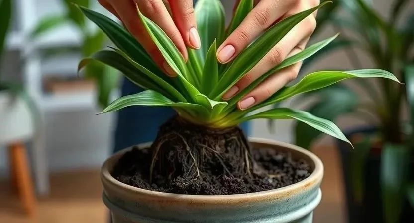 - Аккуратно извлеките хлорофитум из старого горшка, стараясь не повредить корни.