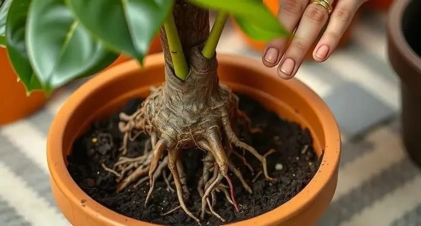 - Аккуратно извлеките растение из старого горшка, стараясь не повредить корни.