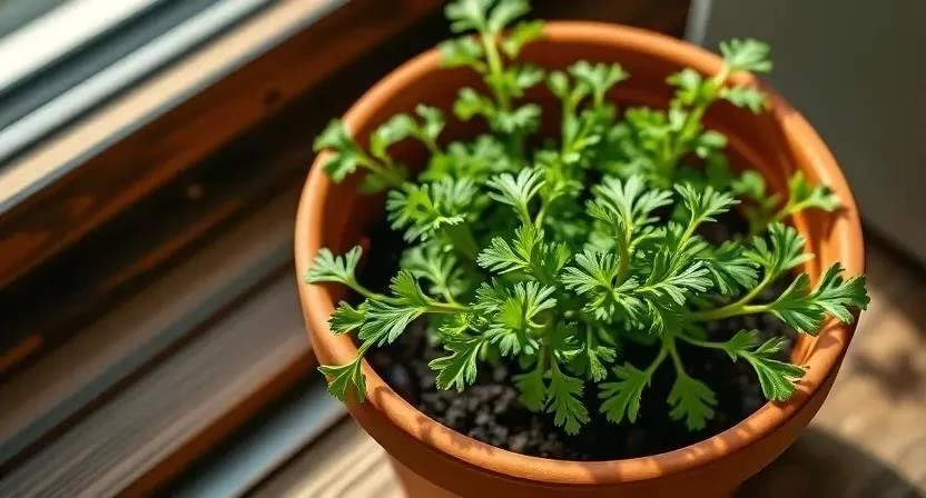 - Освещение: Петрушка любит яркий, рассеянный свет. Лучше всего разместить горшок на восточном или западном окне. Если света недостаточно, можно использовать фитолампу.