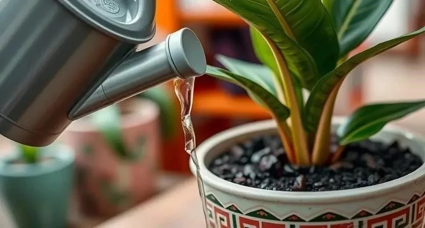 Зимой аглаонема замедляет свой рост, поэтому полив следует сократить. Важно не переувлажнять почву, так как это может привести к загниванию корней. Я всегда проверяю влажность почвы перед поливом, опуская палец на глубину 2-3 см. Если почва сухая, то можно поливать. Используйте отстоянную воду комнатной температуры. Признаки перелива – пожелтение и опадание листьев, а также появление неприятного запаха от почвы. Недолив проявляется в поникших и сухих кончиках листьев.