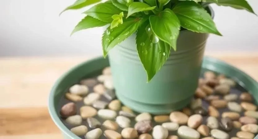 Поддоны с водой – это еще один простой способ повышения влажности. Наполните поддон керамзитом или галькой и налейте воду. Поставьте горшок с растением на поддон, следя за тем, чтобы дно горшка не касалось воды. Вода будет испаряться, создавая влажный микроклимат вокруг растения. Я часто использую этот метод для моих орхидей.