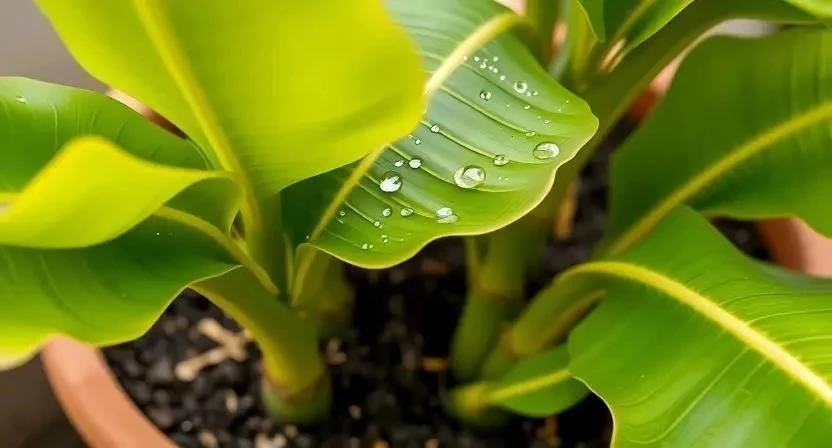 Банан любит высокую влажность воздуха. Зимой, когда воздух в квартире сухой из-за отопления, необходимо регулярно опрыскивать растение водой. Также можно поставить горшок с бананом на поддон с влажным керамзитом. Я заметил, что регулярное опрыскивание помогает поддерживать листья банана в здоровом состоянии.