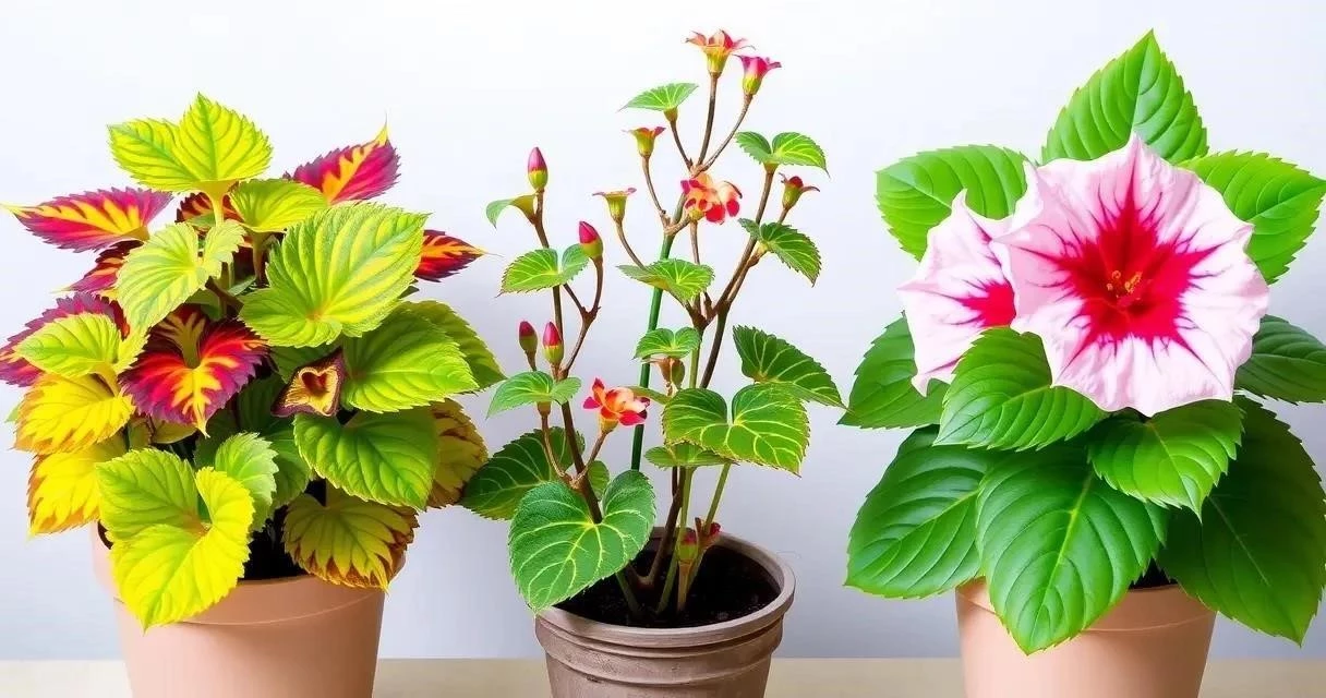 - Королевская бегония: Обладает крупными, бархатистыми листьями с необычным рисунком.