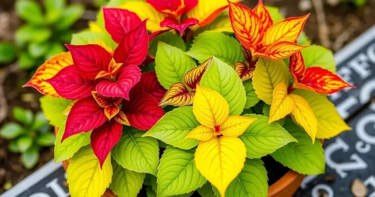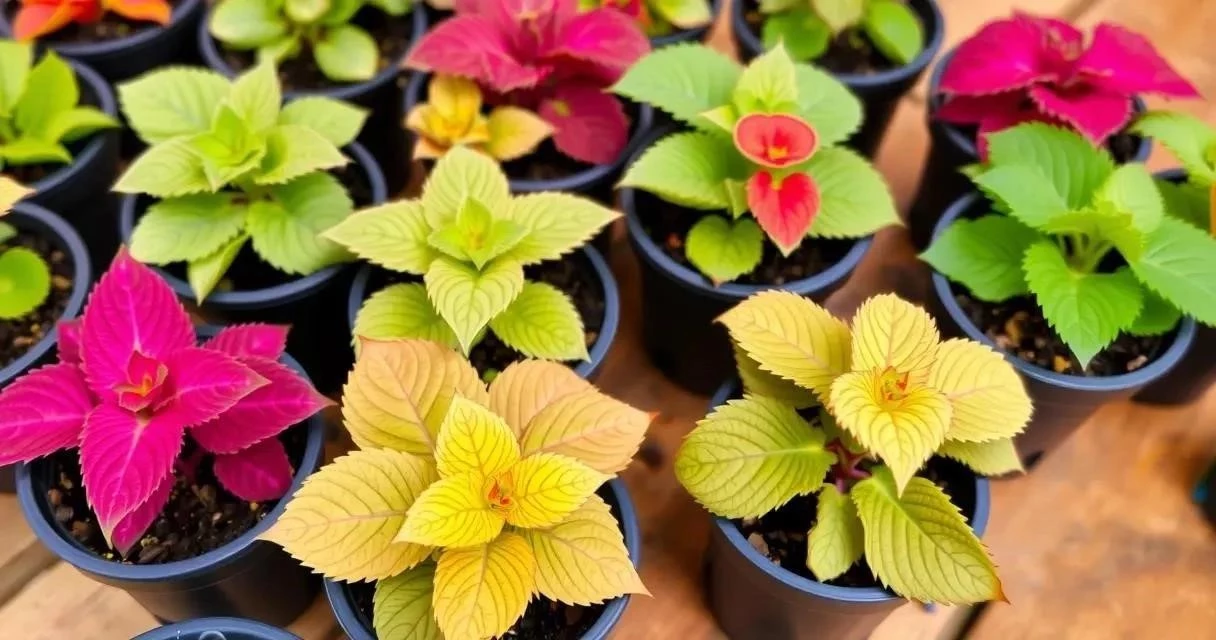- Колеус Wizard: Компактный сорт с яркими, пестрыми листьями.