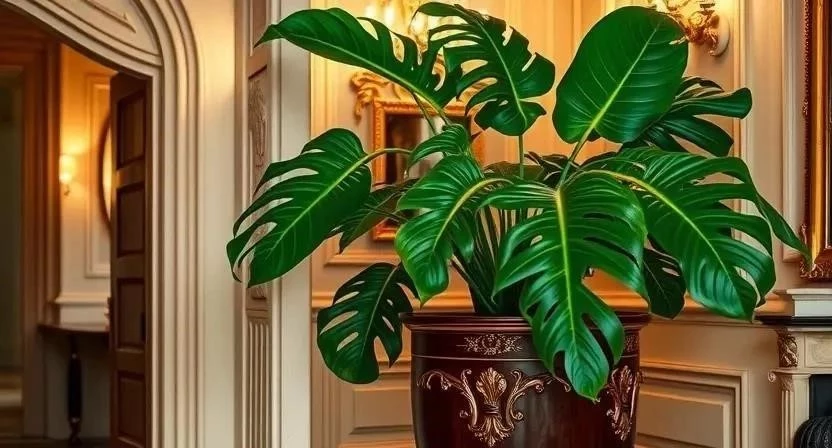 - Монстера: Крупные, резные листья монстеры создают эффектный акцент.