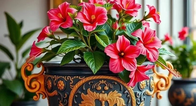 - Гибискус: Крупные, яркие цветы гибискуса идеально вписываются в барочный интерьер.