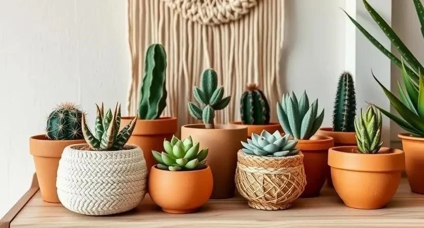 Суккуленты и кактусы в бохо интерьере
