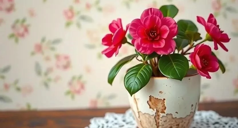 Не все растения одинаково хорошо смотрятся в интерьере шебби-шик. Для создания гармоничной атмосферы лучше выбирать растения с нежными цветами и изящной листвой. Гардения, с ее белоснежными цветками и восхитительным ароматом, станет настоящим украшением гостиной или спальни. Камелия, с ее крупными, махровыми цветами, добавит интерьеру элегантности и изысканности. Табернемонтана, с ее яркими, розовыми цветами, привнесет в дом нотку романтики. Кроме этих растений, для шебби-шик также подойдут азалии, бегонии, фиалки и плющи.