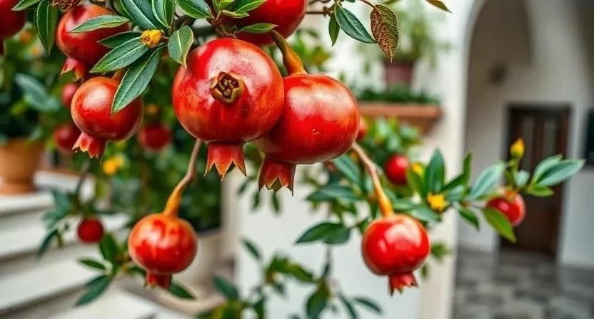 - Гранат: Экзотический вид, красивые цветы и плоды.