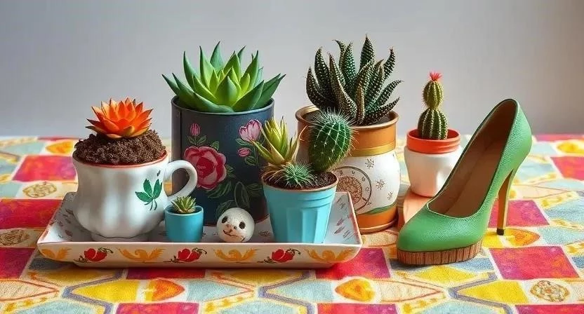 - Кактусы и суккуленты: Их необычные формы и текстуры идеально подходят для стиля китч.