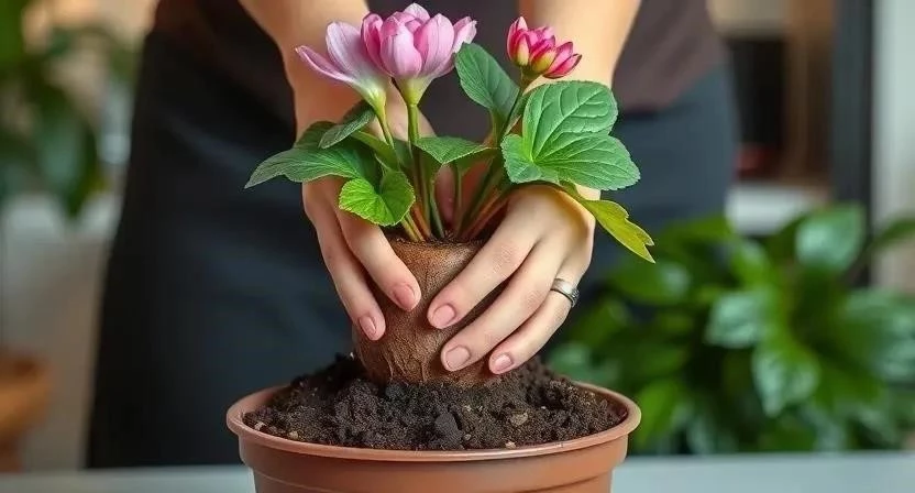 Пересаживать цикламен следует раз в 1-2 года, в конце периода покоя (летом). Выберите горшок немного больше предыдущего. Используйте легкий, рыхлый грунт, состоящий из листовой земли, торфа и песка. При пересадке аккуратно извлеките растение из старого горшка, стараясь не повредить клубень и корни. Удалите сухие и поврежденные корни. Поместите растение в новый горшок и засыпьте его свежим грунтом. После пересадки полейте растение и поставьте его в прохладное, затененное место. Я всегда добавляю немного древесного угля в грунт при пересадке – это помогает предотвратить гниение клубня.