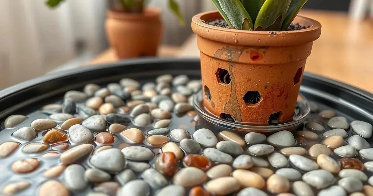 4. Поддон с влажным керамзитом/галькой: Поместите горшок с растением на поддон, наполненный влажным керамзитом или галькой. Вода, испаряясь, будет повышать влажность вокруг растения.