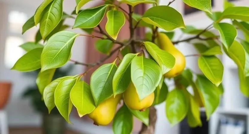 - Китайская груша: Отличается компактными размерами и хорошей адаптацией к комнатным условиям. Плоды хрустящие и сочные.