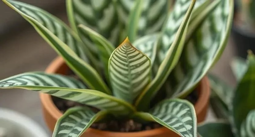- Хавортия полосатая: Имеет темно-зеленые листья с полосами, собранные в плотную розетку.